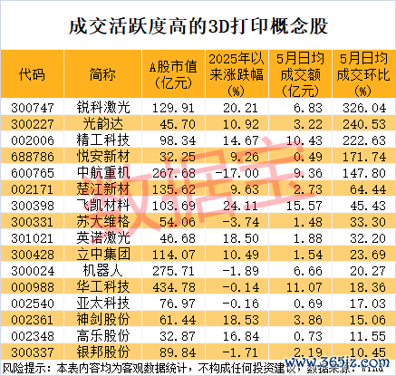 成交活跃度高的3D打印概念股出炉成交活跃度高的3D打印概念股出炉